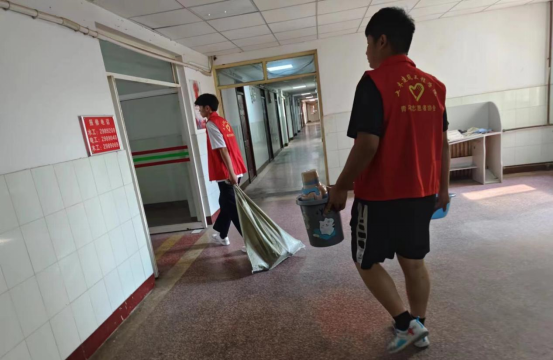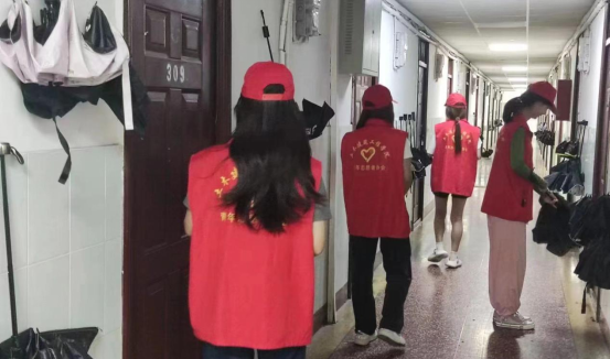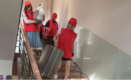 我院志愿者分成男女两组,分别前往毕业生所在的宿舍。他们穿梭在宿舍楼层与宿舍间,打扫卫生、整理物品、搬运行李,他们用实际行动表达了对学长学姐们最真挚的祝福。志愿者们手里的行李所承载的是三年的青春,他们以最饱满的热情、最细致的态度、最美丽的姿态,搬运起这一份份沉甸甸的回忆。