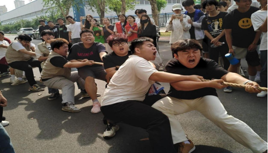 同学们双脚死死蹬地,青筋暴起,拼尽全力向后拽绳,嘶吼声响彻赛场。