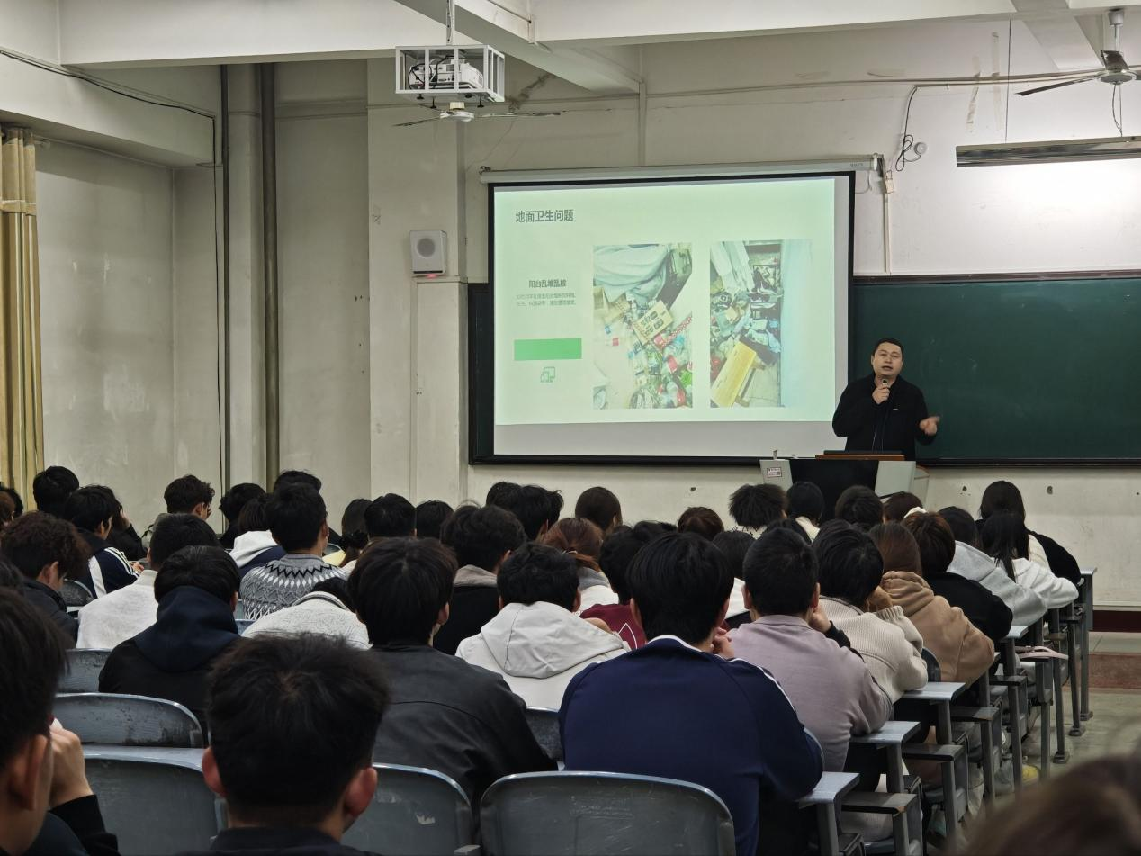 会上,团总支书记张波老师结合近期检查情况,具体剖析了当前宿舍中存在的卫生死角、物品堆放、安全隐患等突出问题。他向全体同学发出倡议,呼吁大家从即刻做起,从细节入手,自觉践行“每日清扫、及时收纳”的良好习惯,将维护宿舍环境内化为一种常态化的自觉行为,共同构筑文明整洁、安全有序的生活空间。