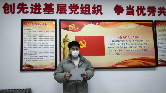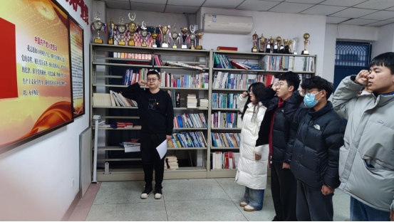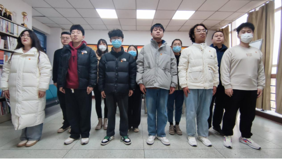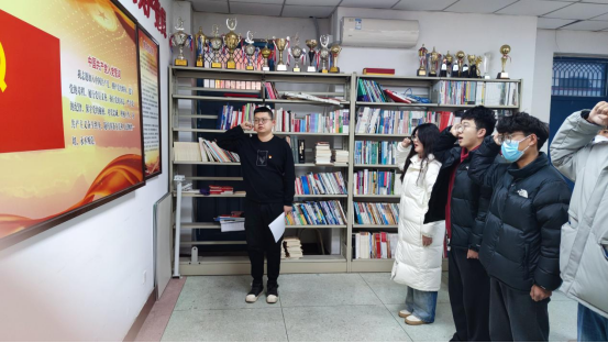 为深入学习贯彻党的二十大精神,弘扬伟大建党精神,进一步教育引导新发展党员铭记入党初心、强化党员意识、坚定理想信念,充分发挥先锋模范作用,2023年2月18日下午2:30,ok138cn太阳集团529在学院学生支部活动室开展2023年新发展党员入党宣誓仪式,学院学生支部书记徐洁同志、学院政治辅导员林海山同志、张波同志、张辉同志、张瑞娜同志,新接收预备党员6人参会。