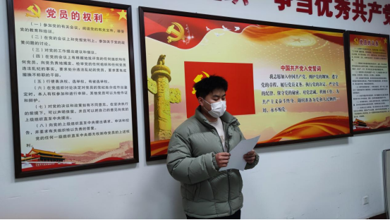 “我志愿加入中国共产党,拥护党的纲领,遵守党的章程……为共产主义奋斗终身,随时准备为党和人民牺牲一切,永不叛党。”全体新发展党员面向党旗、右手举拳,庄严宣誓,铿锵有力的宣誓声表达了新发展党员们对党的无限忠诚和为共产主义事业奋斗终身的坚定决心。
